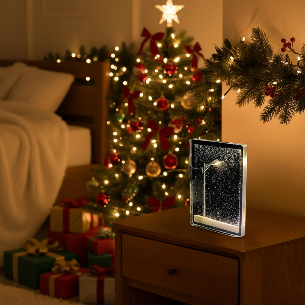 Gently shake the lantern to create a realistic snow scene with snowflakes and trees, bringing the serene beauty of winter to your home.